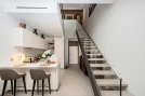 На нижнем этаже этой великолепной недвижимости находится красивая прихожая с гостевым туалетом, просторная, залитая светом гостиная с полностью оборудованной американской кухней, выходящая на приятную террасу, простирающуюся вдоль частного сада, что редкость для Монако.